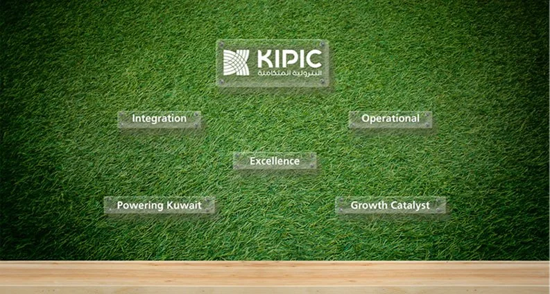 This logo is designed to create momentum and growth for KIPIC and Kuwait. The inspiration and rationale behind the stylized “K” graphic is integration and growth, it also represents Kuwait. The various woven, overlapping and intersecting graphic lines represent KIPIC’s integration of the petroleum industry.